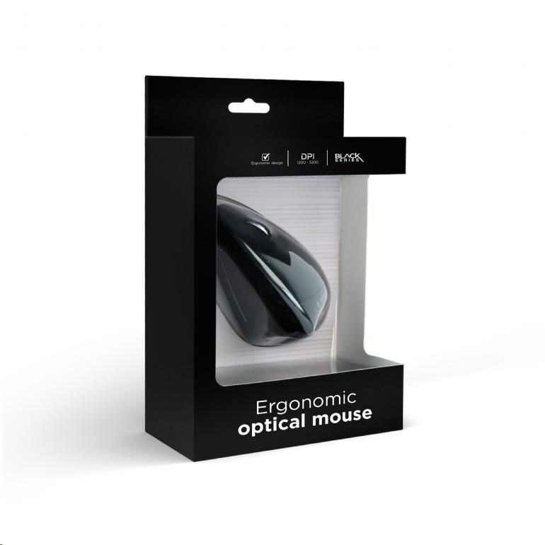 Ergonomická drátová optická myš s šesti tlačítky. Nastavitelné rozlišení optického senzoru myši od 1200 do 3200 DPI a delká kabelu nabízí 1,35 m. Konektor myši je USB.