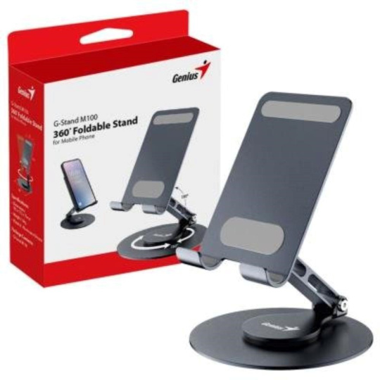 Přenosný stojan na telefon či tablet o velikosti 4" až 10", který umožňuje naklápění o 180° a otáčení o 360°. Je ideální pro čtení, videohovory nebo procházení webu. Díky skládací konstrukci a nízké hmotnosti je vhodný pro cestování.
