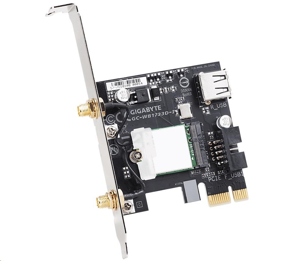 GIGABYTE GC-WB1733D-I, WiFi 802.11ac, Bluetooth 5, PCIe, Dual Band, 1734 Mbps
