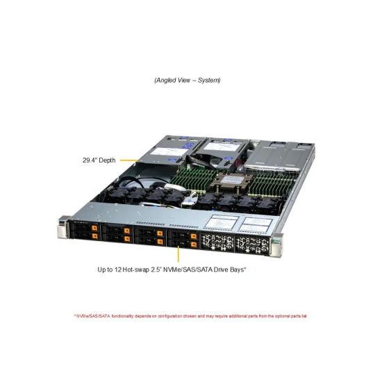 Supermicro AS-1115HS-TNR je vysoce výkonný 1U server navržený pro moderní datová centra. Tento server podporuje procesory AMD EPYC™ 9004/9005* Series a až 12 DDR5 DIMM slotů, což zajišťuje vynikající výpočetní výkon a paměťovou kapacitu. S jedním U.2 NVMe SSD a flexibilními síťovými možnostmi je ideální pro širokou škálu aplikací, včetně virtualizace a cloud computingu.