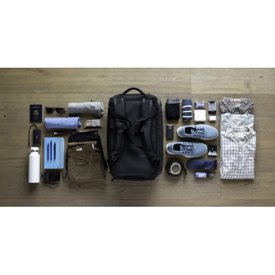 Taška se dá snadno přenášet, protože nabízí hned několik způsobů nošení. Držadlo na popruzích vám umožní držet tašku jako běžné zavazadlo. Tyto pruhy se mohou zasunout a místo toho můžete využít integrované batohové popruhy. Vyměníte-li držadlo za batoh, jedinečný design eliminuje jakékoli volně visící popruhy a zajišťuje čisté linie a nulové nebezpečí zakopnutí. Pokud tašku nesete jako batoh, lze připevnit bederní pás a vylepšit tak stabilitu, když lezete ve skalnatém terénu nebo potřebujete další zabezpečovací prvek v přelidněných centrech měst. Taška nabízí také provlékací poutko držadla, které vám umožní nasunout cestovní tašku 30L na rukojeť kufru a přes letiště ji dovézt na kolečkách, aniž byste si namáhali ramena nebo záda.