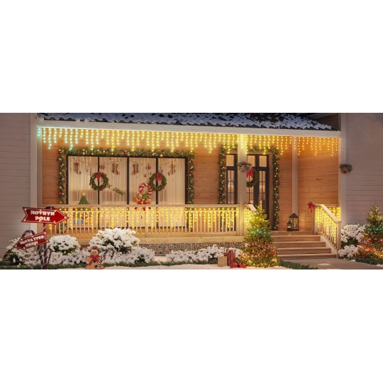 Světelné rampouchy Govee přinášejí dokonalou kombinaci stylu a funkcionality pro sezónní venkovní výzdobu. Tyto chytré rampouchové světelné řetězy jsou navrženy tak, aby oživily váš venkovní prostor dynamickými světelnými efekty, ideální pro vánoční dekorace, večírky nebo každodenní atmosférické osvětlení. S různými délkami a efekty napodobují přirozený vzhled rampouchů a pokročilé RGBIC technologii, která umožňuje jednotlivým LED diodám svítit více barvami současně Tím vytváří plynulé a živé přechody barev.