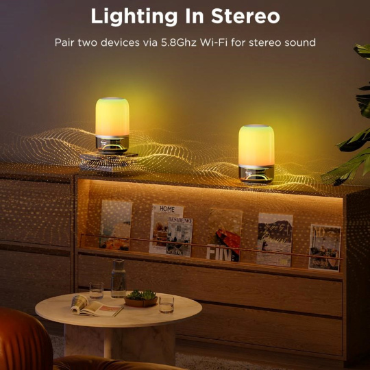 Podpora stereo párování umožňuje propojit dvě lampy a získat prostorový, hluboký a plně imerzivní zvuk. Hudba tak zní stejně realisticky jako v profesionálním studiu. Ideální pro filmy, hry nebo párty.