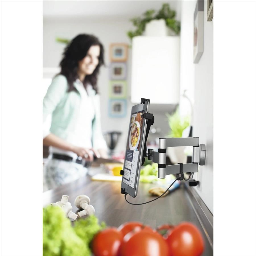- držák tabletu pro rychlý a snadný přístup k zařízení - pro zařízení s uhlopříčkou 7"-11" (17,8-27,9 cm), výškou od 11 cm do 18 cm a šířkou od 19 cm do 28 cm - možnost otáčení pro individuální nastavení polohy zařízení - možnost naklopení nahoru/dolů - montáž na stěnu pomocí šroubů a hmoždinek - nastavitelné čelisti pro přizpůsobení konkrétnímu zařízení a bezpečné upevnění zařízení - vysoce kvalitní, stabilní, hliníkový držák s jednoduchým designem - vhodný pro kanceláře, kuchyně, dětské pokoje - maximální zatížení: 1 kg - materiál: hliník/ plast - barva: černá/ stříbrná - součástí balení je montážní materiál Obsah balení: - nástěnný držák na tablet - montážní materiál - návod k použití.