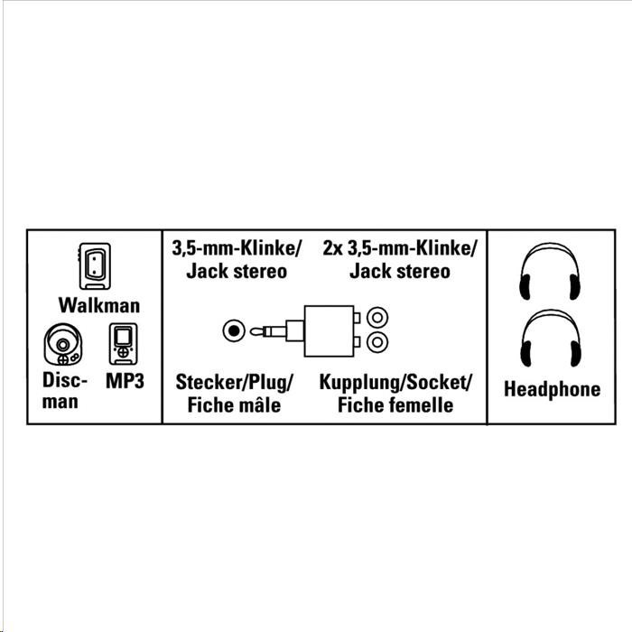 - jack 3,5 mm stereo vidlice - 2x jack 3,5 mm stereo zásuvka - vhodné např. pro připojení dvou párů sluchátek k jednomu audio výstupu.