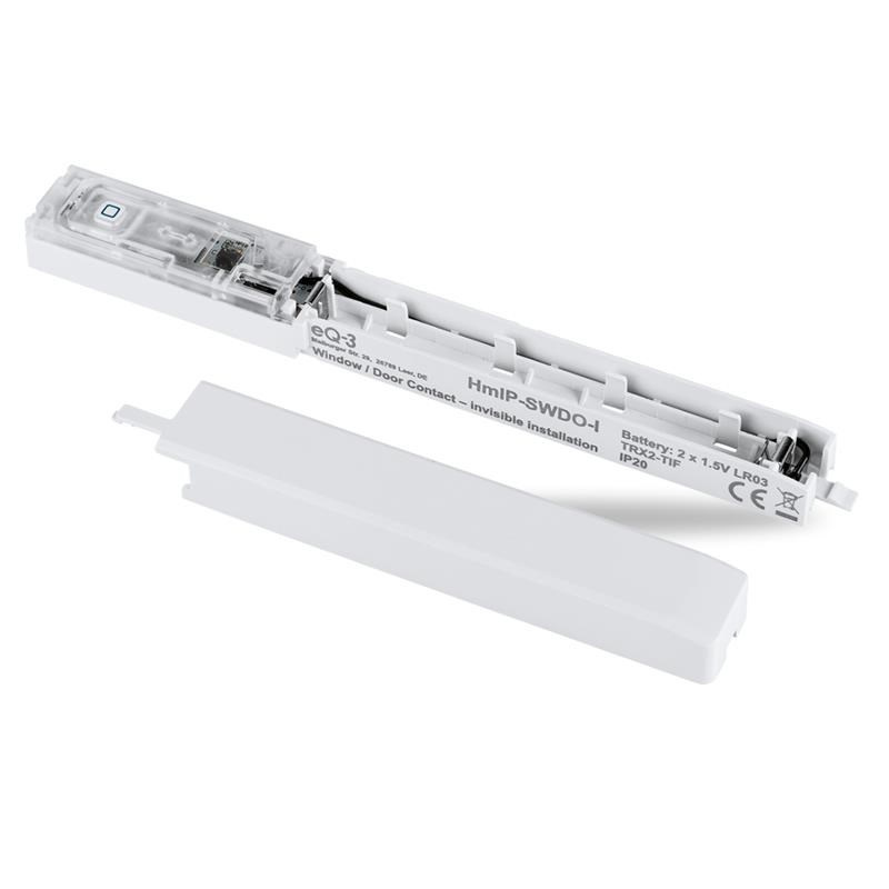 Bezdrátový optický Okenní a dveřní senzor - optický plus, skrytá montáž (HmIP-SWDO-I) určený pro použití ve vnitřních prostorech je součástí systému chytré domácnosti Homematic IP. Lze ho použít pro spolehlivou ochranu všech typů oken a dveří prostřednictvím optické technologie na principu infračervené světelné bariéry s konstrukcí pro skrytou montáž a extra dlouhou životností baterií.