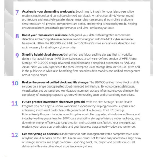 Žádné kompletní výměny: Díky programu HPE Timeless Storage pro HPE Alletra Storage MP B10000 můžete chránit své investice a udržovat úložiště neustále aktuální pomocí aktualizace řadiče bez přerušení provozu. Tím se sníží vaše celkové náklady na vlastnictví a ušetříte v průměru 30 % oproti tradičním kompletním výměnám. Neustále se zlepšující datové služby: Využijte plný potenciál HPE Alletra Storage MP B10000 s naším komplexním předplatným softwaru. Získejte přístup ke všem funkcím a vylepšením našeho operačního systému, včetně cloudových operací řízených umělou inteligencí v cloudu HPE GreenLake, bez dalších nákladů. Spolehněte se na 100% dostupnost dat – zaručeno: Zapomeňte na přerušení provozu způsobená neočekávanými výpadky. HPE Alletra Storage MP B10000 je platforma řízená umělou inteligencí, rozdělená a bez jediného bodu selhání, která zaručuje odolnou 100% dostupnost dat pro každého zákazníka a každé pole. Ukládejte více za méně s HPE StoreMore Guarantee: To zaručuje celkovou úsporu minimálně 4:1 pro vaše pracovní zatížení – snížení nákladů na fyzické úložiště, úsporu energie a zmenšení stopy datového centra. 30denní záruka spokojenosti: Vyzkoušejte HPE Alletra Storage MP B10000 po dobu 30 dnů bez rizika. Pokud nebudete zcela spokojeni s výhodami a schopnostmi vašeho úložného systému, jak jsou popsány v produktových specifikacích, budeme s vámi spolupracovat na nápravě.