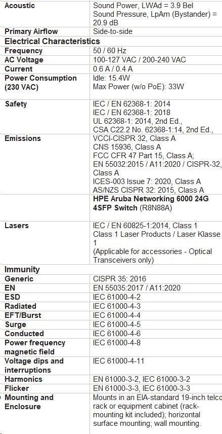 | Specification | 6000 24G 4SFP Switch (R8N88A) |