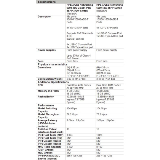 HPE Aruba Networking CX 6000 48G 4SFP Switch.