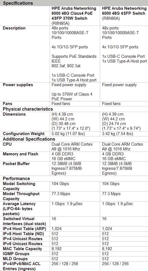 HPE Aruba Networking CX 6000 48G 4SFP Switch R8N86A