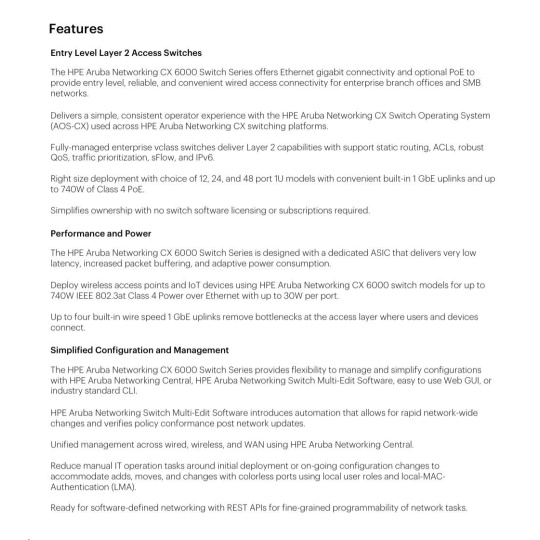 HHPE Aruba Networking CX 6000 8p 10M/100M/1G 2p SFP 1G Switch.