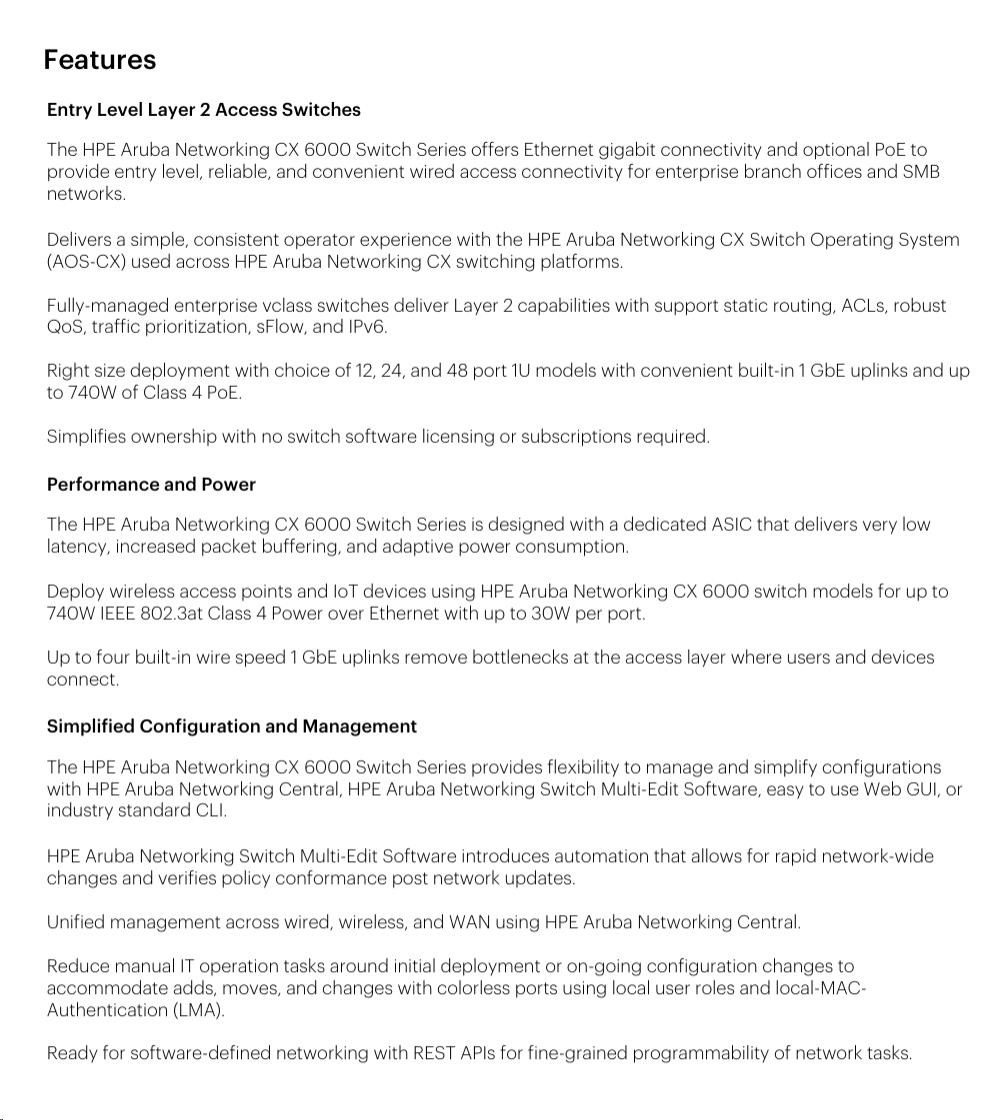 HPE Aruba Networking CX 6000 8p 10M/100M/1G 2p SFP 1G Switch