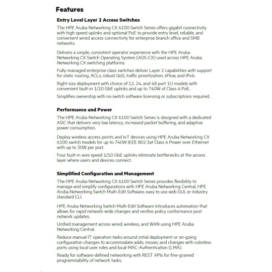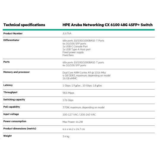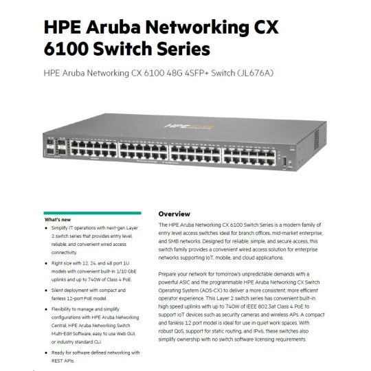HPE Aruba Networking CX 6100 48G 4SFP+ Switch.