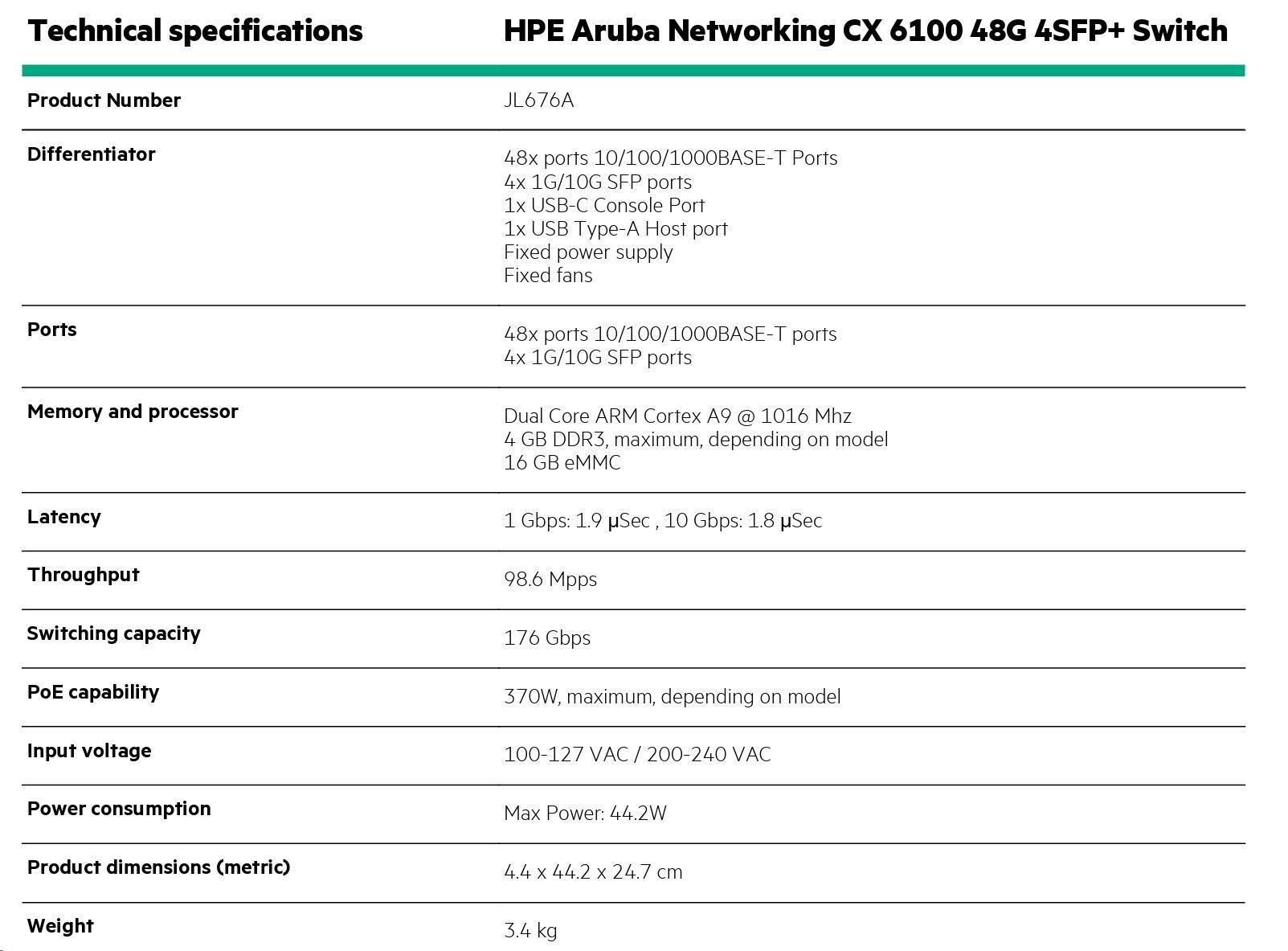 HPE Aruba Networking CX 6100 48G 4SFP+ Switch.