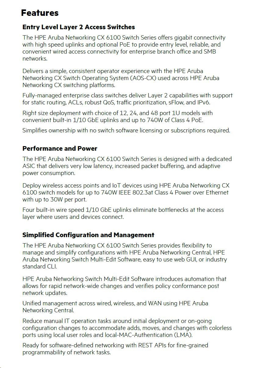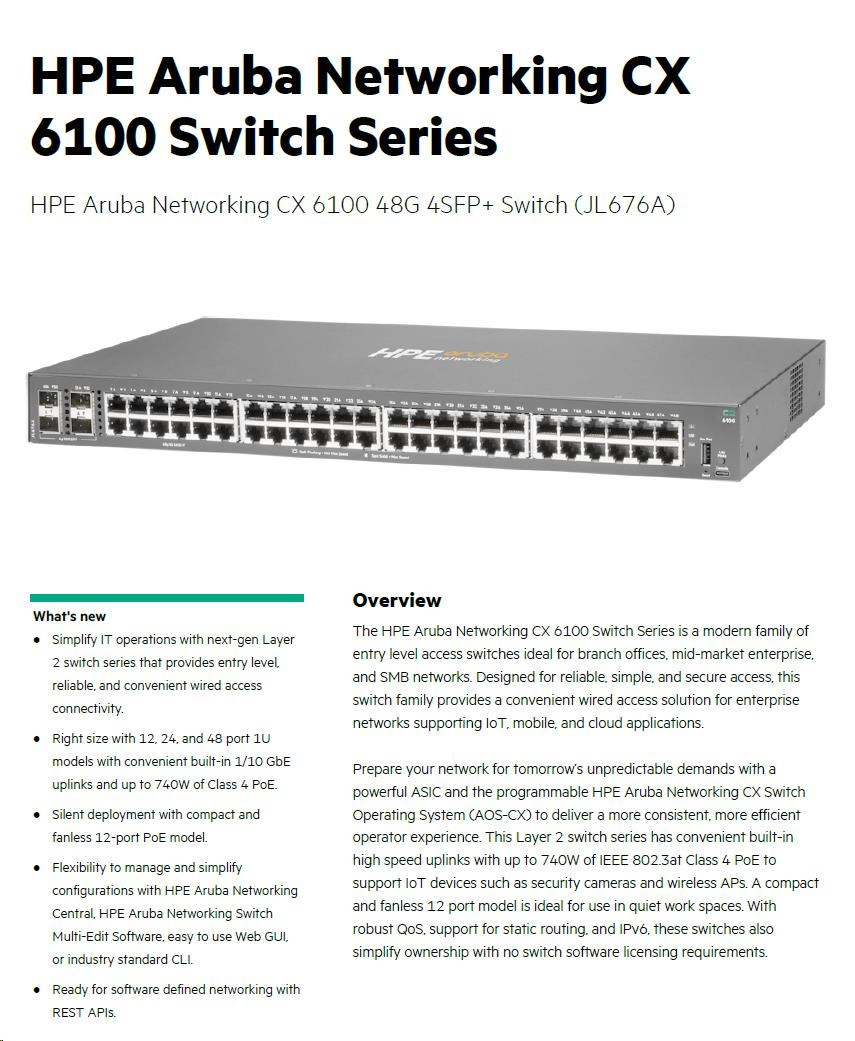 HPE Aruba Networking CX6100 48G 4SFP+ Switch