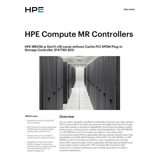 HPE MR216i-p Gen11 16 Internal Lanes/No Cache SPDM PCI Plug-in Storage Controller (raid 0,1,10 only).