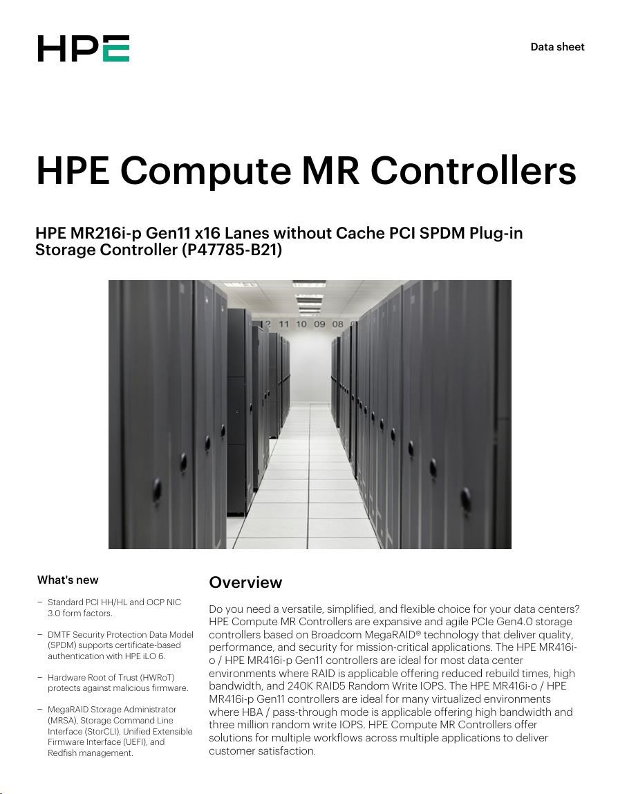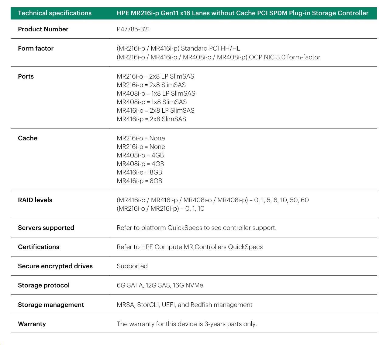 HPE MR216i-p Gen11 16 Internal Lanes/No Cache SPDM PCI Plug-in Storage Controller (raid 0,1,10 only).