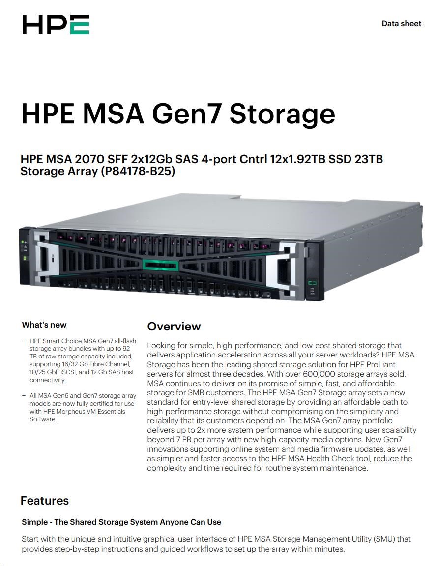HPE MSA 2070 SFF 2x12Gb SAS 4p Array.