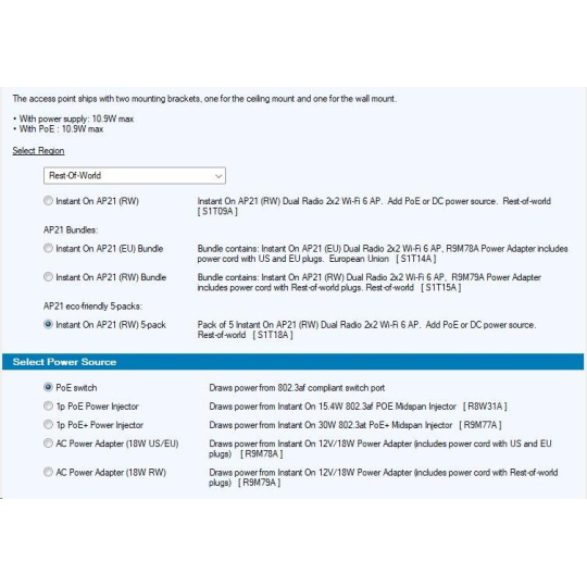 HPE Networking Instant On AP21 (RW) Dual Radio 2x2 Wi-Fi 6 Access Point 5 Pack (+ 5 Mount Brackets).