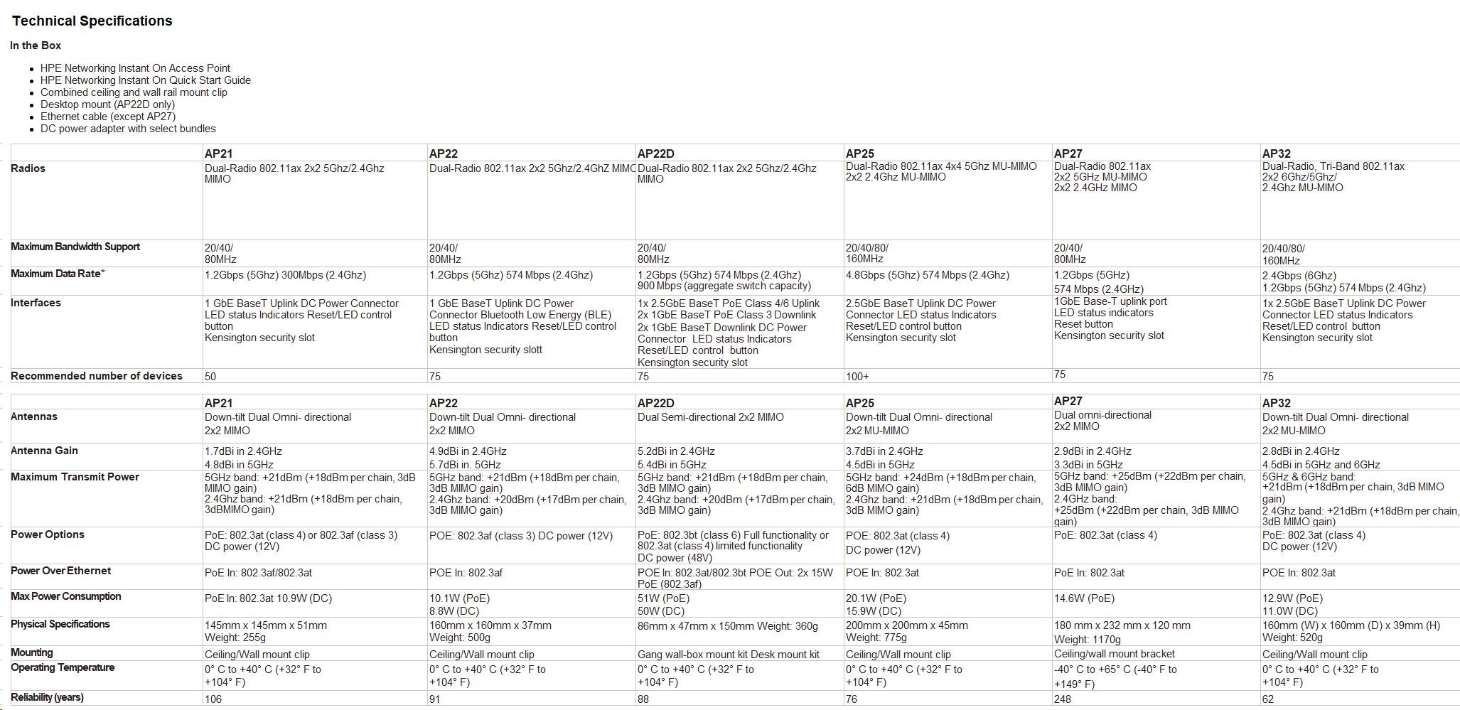 HPE Networking Instant On AP21 (RW) Dual Radio 2x2 Wi-Fi 6 Access Point 5 Pack (+ 5 Mount Brackets).