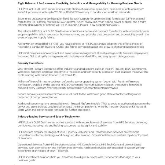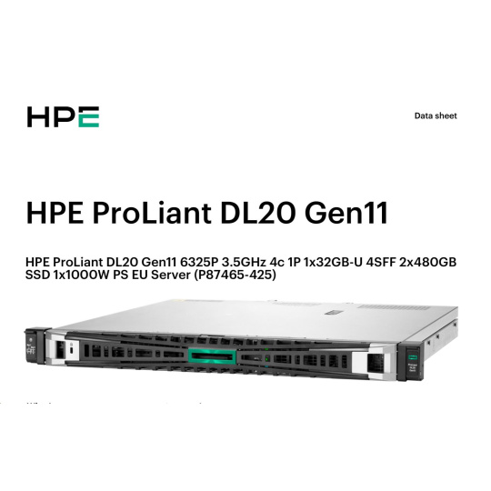 HPE PL DL20g11 6325P (3.5G/4C8T) 1x32G 2x480G SSD VROC 4SFF-HP 4p1Gb 1x1000W Smart Choice.