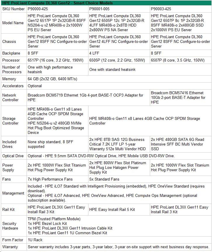 | HPE ProLiant Compute DL360 Gen12 - Smart Choice Models | |