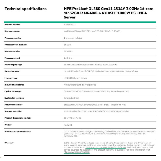 HPE ProLiant DL380 Gen11 - Technical Specifications