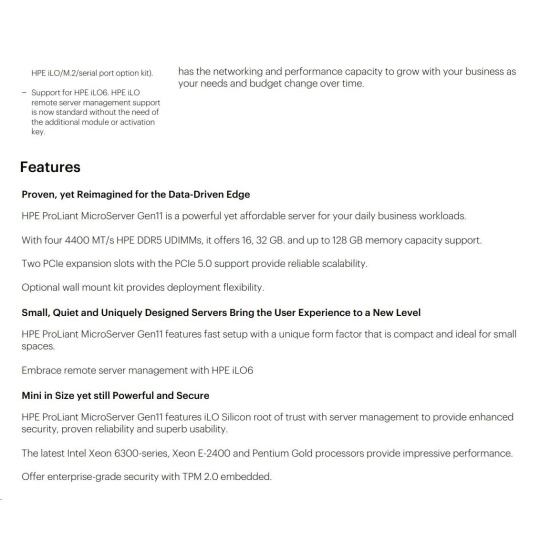 HPE ProLiant MicroServer Gen11 - Specifications