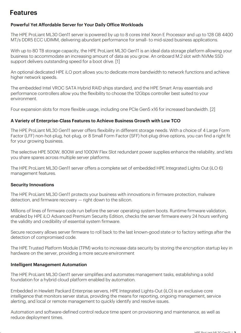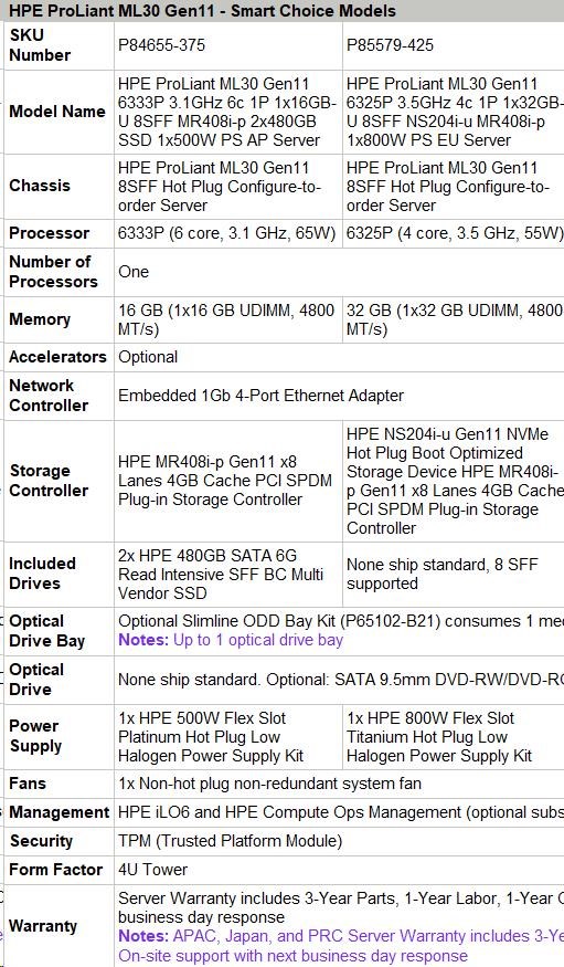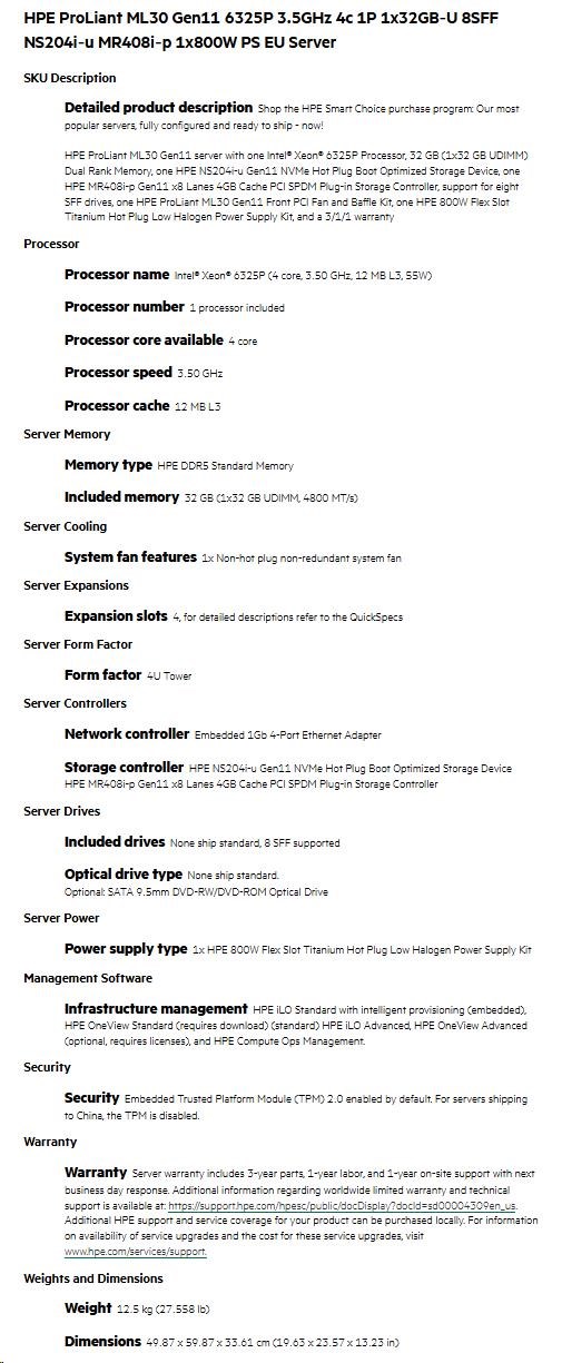 HPE PL ML30 gen11 6325P (3.5G/4C8T) 1x32G 8SFF NS204i-u(2x480g) MR408i-p 2x800W 3/1/1 Smart Choice.