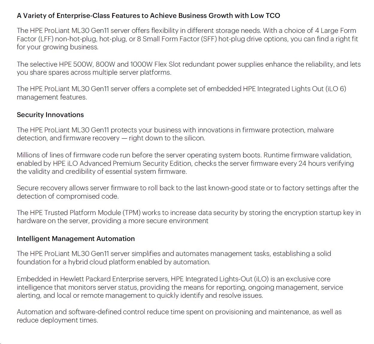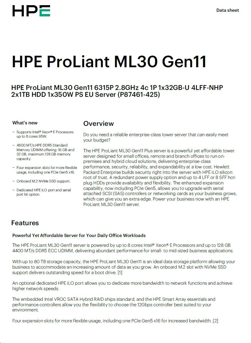 HPE PL ML30g11 6325P (3.5G/4C8T) 1x32G 2x960G SSD SATA 4LFF-HP VROC 1x1000W 4p1G NBD311 Smart Choice.