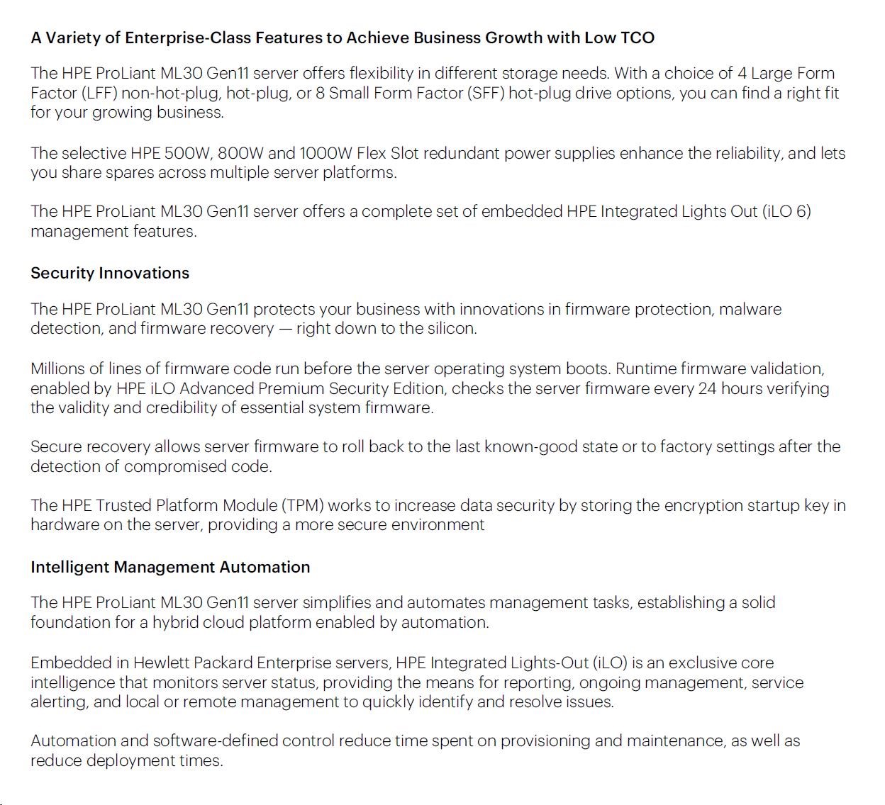HPE PL ML30g11 6333P (3.1G/6C12T) 1x32G 2x480G 2x1000W MR216i-p 8SFF 4p1G NBD311 Smart Choice.