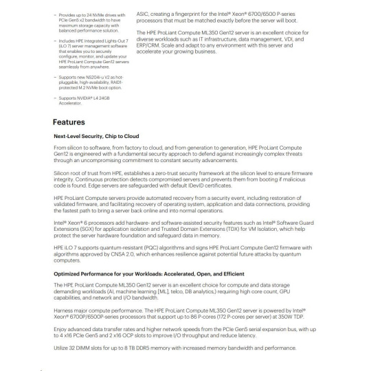 HPE PL ML350 Gen12 6505P (2.2/12C) 1x64G (P69728) 2x960G MR408i-o 8SFF 2x1000W 1GbE NBD333 Smart Choice.