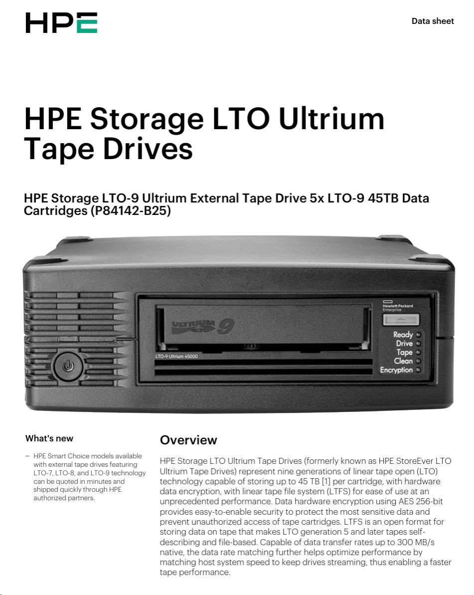 HPE Storage LTO-8 Ultrium External Tape Drive (+5x Q2078A LTO-8 30TB Data Cartridges) Smart Choice