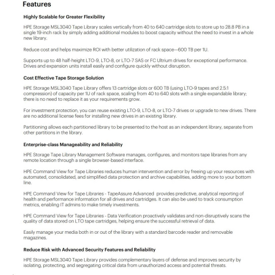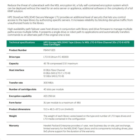 HPE Storage MSL3040 Tape Library 1x MSL LTO-9 Fibre Channel 20x LTO-9 45TB Data Cartridges.