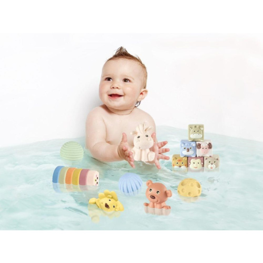 Sada hraček do vody 4v1, s roztomilými zvířátky, promění každou koupel v zábavnou hru. Míčky, kostky a zvířátka se postarají o to, že koupání ve vaničce, vaně nebo v bazénku nebude nuda. Zvířátka v různých podobách se rozhodně vody nebojí a jsou pro každou legraci. Při hře s hračkami do vody děti zdokonalují motorické dovednosti, koordinaci očí a rukou a užijí si spoustu legrace..