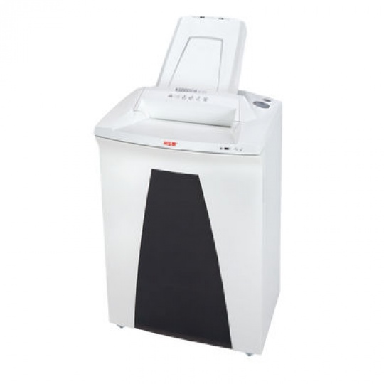 Moderní skartovací stroj s automatickým podavačem dokumentů. Papíry ke skartování lze vkládat přímo do skartovací štěrbiny ovládané fotobuňkou nebo do velkokapacitního zásobníku s kapacitou až 500 listů, jehož obsah po uzavření stroj automaticky zpracuje. Zásobník lze po vložení papíru uzamknout vsunutím USB paměti do zdířky. Do zpracování všech dokumentů je zásobník uzamčen. Odemknout ho lze opětovném vložením té samé USB paměti do zdířky. Po vyprázdnění zásobníku se zámek automaticky uvolní. Zásobník je vybaven čidlem přítomnosti papíru. Nabírání dokumentů zajišťují otočné segmenty s technologií nanogrip, které jsou spolehlivé i při odebírání dokumentů tištěných na nestejných papírech. Konstrukce stroje umožňuje během zpracovávání dokumentů ze zásobníku současně skartovat papíry vkládáné do štěrbiny. Masivní nože v křížovém řezu mají zvýšený stupeň utajení. Umožňují zpracování papíru s kancelářskými sponkami, plastových karet i CD/DVD. Zásobník na odpad o zvýšeném objemu 82 l je vybaven závěsem na plastový pytel. HSM Securio AF500 vyniká tichým chodem, zvýšeným výkonem, spolehlivostí a úsporou elektrické energie v pohotovostním režimu (EMCS). Záruka na stroj 60 měsíců, doživotní záruka na nože. Stroj je vyráběn v Německu, s podporou dodávky náhradních dílů pro případ opravy..