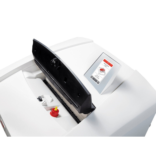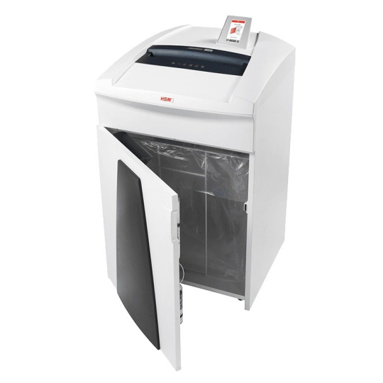 Výkonný profesionální skartovač nové konstrukce určený pro vysokou zátěž. Je vybaven systémem InteligentDrive s ovládáním přes dotykový displej v kombinaci se systémem EMCS, který zajišťuje úsporu elektrické energie při stand-by režimu. Má 3 volitelné režimy chodu: standardní, zvýšený výkon a tichý chod s automatickým přepínáním při zatížení stroje. Displej s českou mutací signalizuje všechny poruchové stavy, lze do něj nastavit kontakt na servis i je vybaven servisním rozhraním s údaji o provozních hodinách a různými nastaveními. Vstup je vybaven bezpečnostním dotykovým spínačem. Masivní ocelové nože poháněné přes převodovku moderním výkonným řízeným motorem mohou skartovat papíry s kancelářskými sponkami i plastové karty a CD/DVD. Tato verze je v příčném řezu. Nože mají systém automatického mazání. Zásobník objemu 145 l je vybaven výsuvným závěsem na plastový pytel. Stroj je mobilní - na kolečkách. Stroj je stejně jako ostatní typy HSM Securio vyroben v Německu. Stroj je vhodný jako skartovač pro zpracování zvláště citlivých osobních údajů dle GDPR, jejichž zneužití by mělo závažný dopad na dotčenou osobu (obor zdravotnictví, pojišťovnictví, advokacie apod.) Skartovací stroj je držitelem certifikátu k životnímu prostředí šetrného výrobku nejvyšší kvality Blue Angel. Záruka na stroj je 60 měsíců, doživotní záruka na nože..