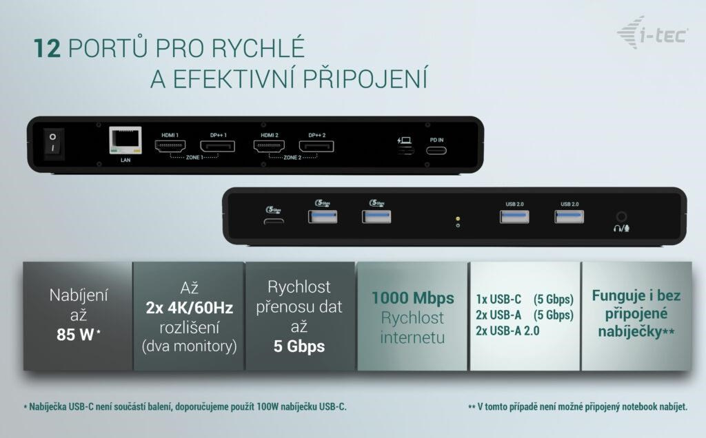 Klonování MAC adresy: ano (za použití software i-tec Docker Pro)