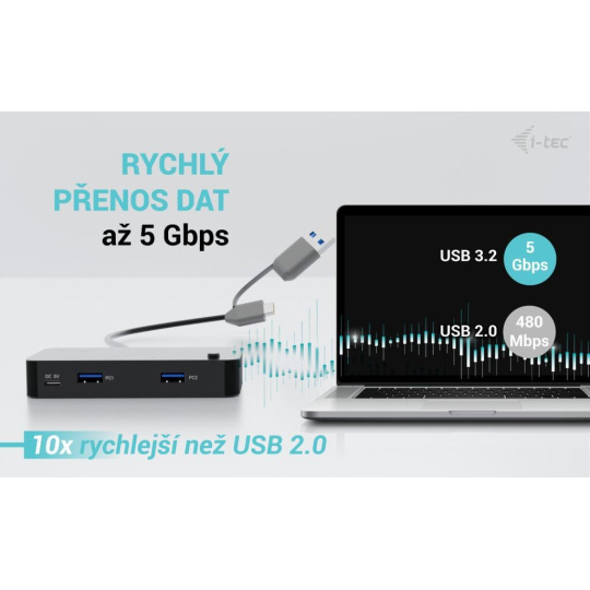 Rozbočovač nevyžaduje instalaci ovladačů, stačí jej připojit kabelem USB-C nebo USB-A a můžete jej začít ihned používat. Rozbočovač má vestavěnou přepěťovou ochranu počítače pro případ zkratu na periferiích.