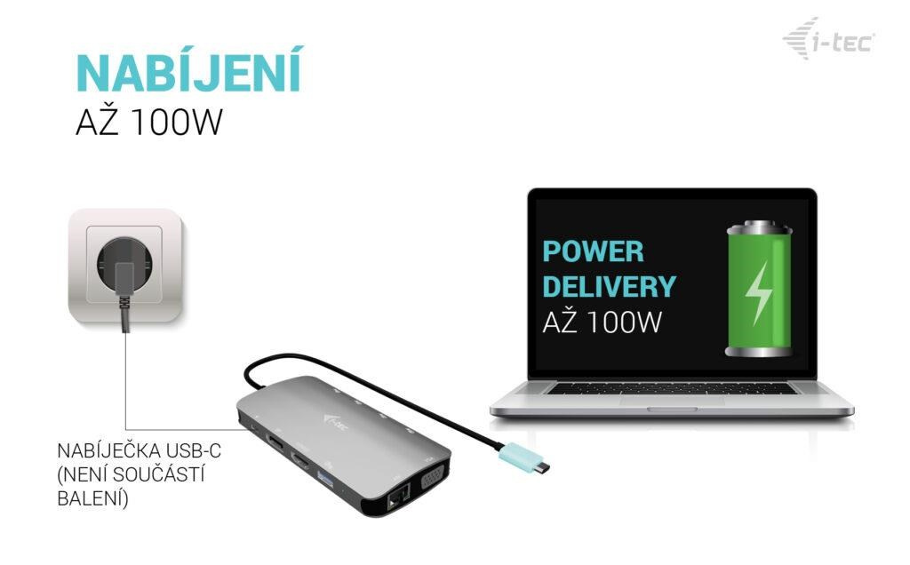• Power Delivery až 100 W – napájení notebooku přes USB-C