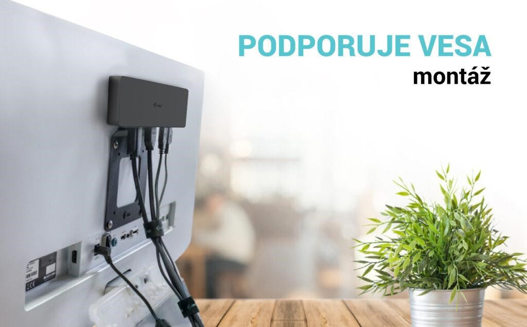 - Dokovací stanice podporuje držák VESA pro inteligentní vertikální instalaci za monitor s podporou VESA