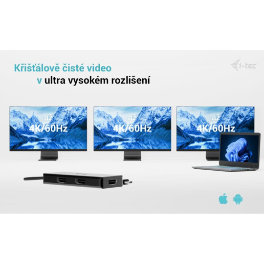 i-tec USB-C Triple 4K HDMI Video Adapter, Power Delivery 100W