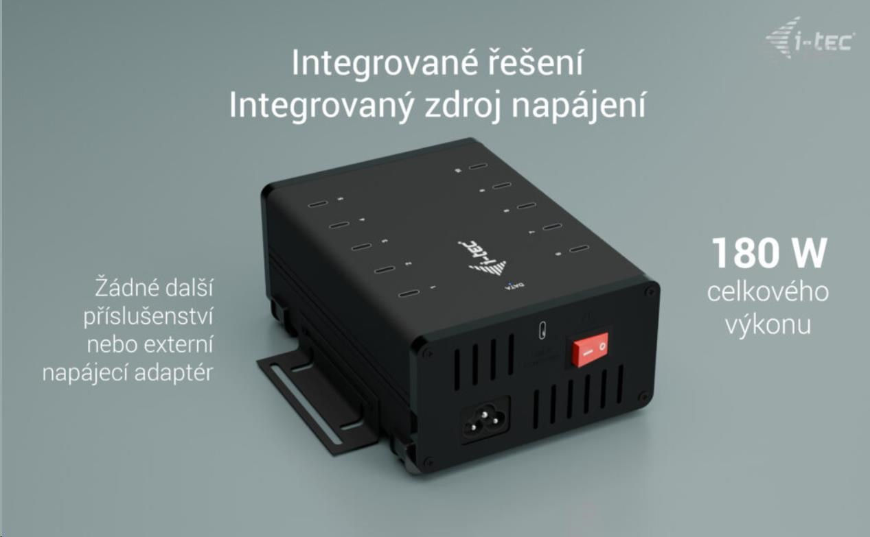 - HUB obsahuje integrovaný napájecí adaptér (180 W)