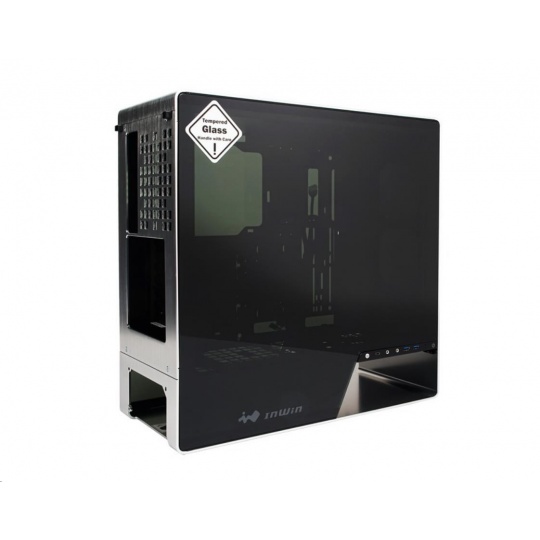 IN WIN skříň 905, Mid Tower, průhledný bok, bez zdroje, silver