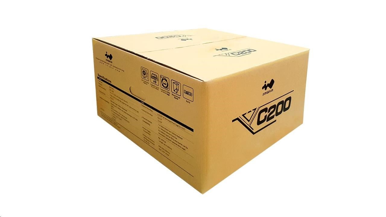 IN WIN skříň C200, mid tower, 166mm fan, 2x2.5", 5x5.25", 1 x USB Type-C, 2x USB 3.0 / HD Audio / Black