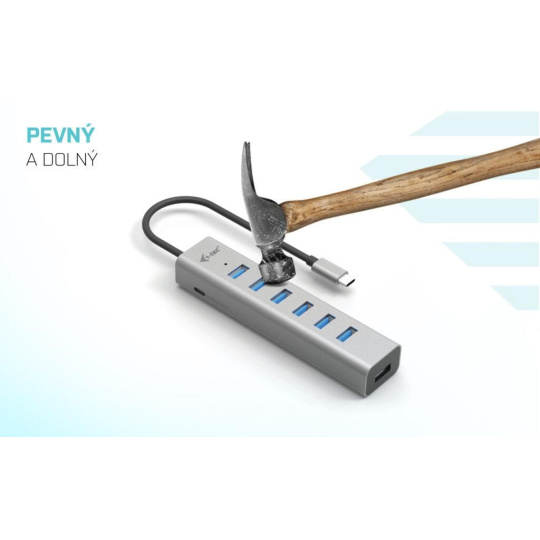 Hub nevyžaduje instalaci ovladačů, pouze jej pomocí USB-C kabelu připojíte a můžete jej ihned začít využívat. Hub má vestavěnou přepěťovou ochranu vašeho počítače pro případ zkratu na periferních zařízeních. Díky kompaktním rozměrům a nízké hmotnosti jej můžete mít v brašně stále sebou – kovový povrch ostatně chrání hub před poškozením a před poškrábáním.