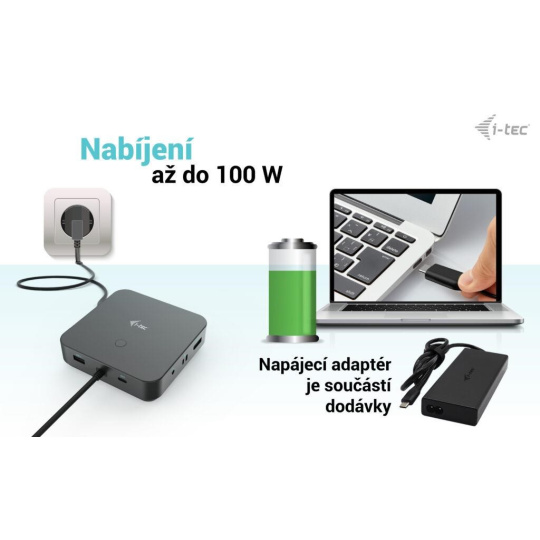i-tec USB-C HDMI Dual DP Docking Station with Power Delivery 100 W + i-tec Universal Charger 100 W
