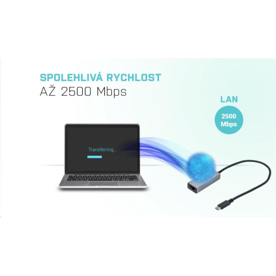 Moderní a ultrarychlý síťový adaptér, který umožní vašemu notebooku, tabletu nebo počítači s USB-C či Thunderbolt” 3/4 portem snadné, rychlé a spolehlivé připojení do podnikové sítě a internetu. Adaptér umí běžet na rychlostech 10/100/1000/2500 Mbps a vy si tak můžete v klidu vychutnat bezpečné vysokorychlostní internetové připojení bez jakéhokoli přerušení.