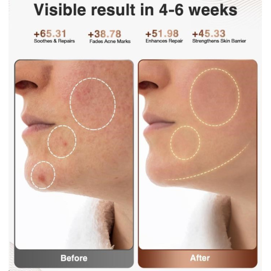 • Viditelné výsledky za 4-6 týdnů: Pravidelné používání prokazatelně redukuje akné, vrásky, pigmentaci a zlepšuje elasticitu pleti.
