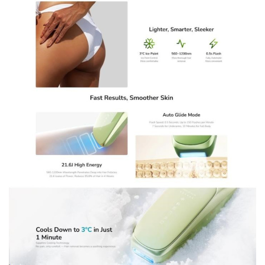 • Revoluční chlazení na 10 °C: Pokročilá chladicí technologie zaručuje naprosto bezbolestné a komfortní ošetření bez pálení a podráždění.